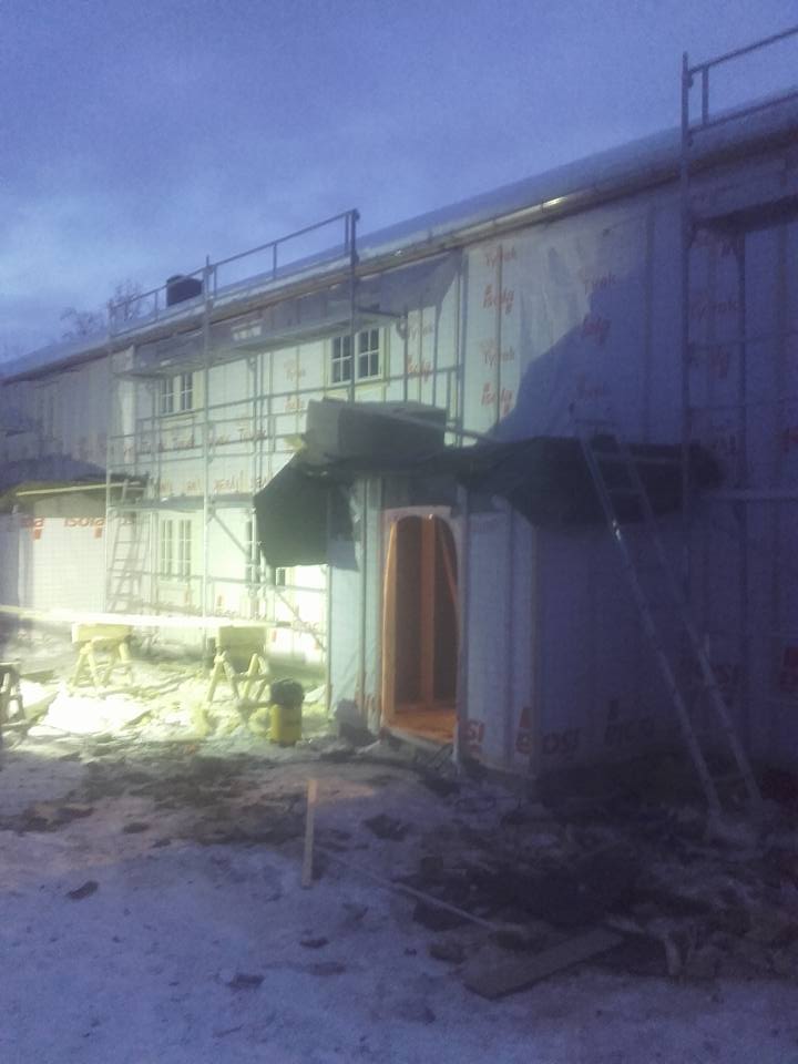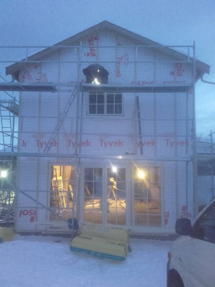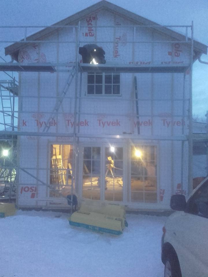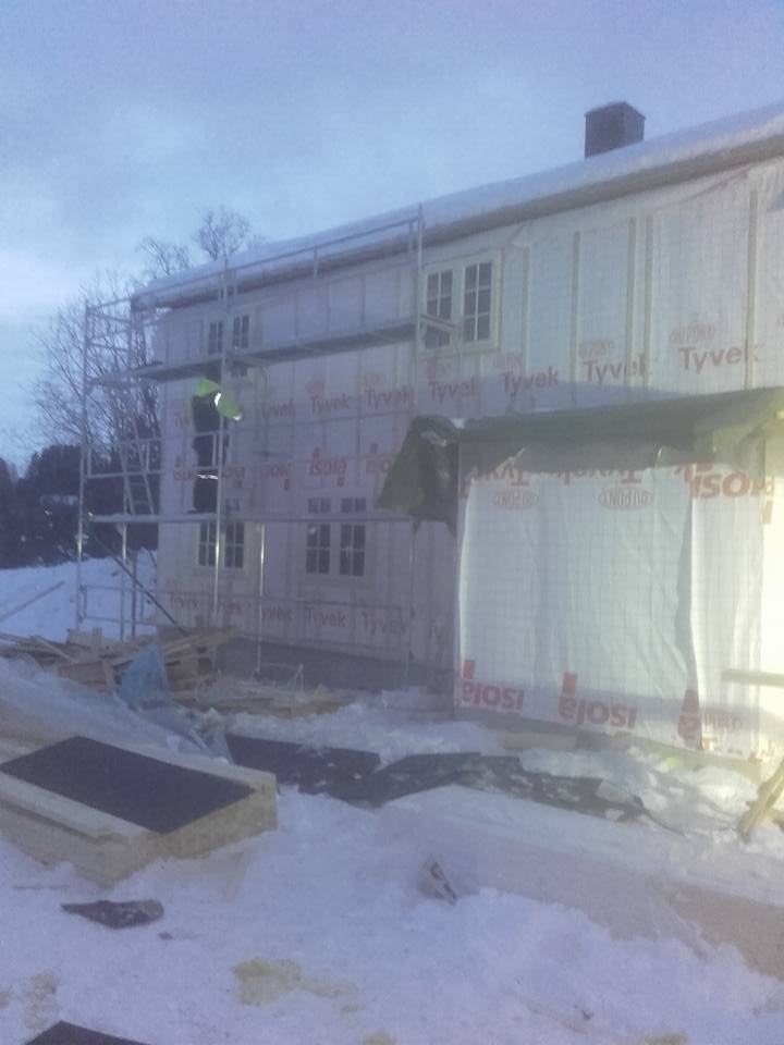 Prosjektet på kvarøyFerdig med takstolene å starta med takdukSvein helge og johnny i taket å riv ut gammel isolasjon. Prosjekt på båsmoen.